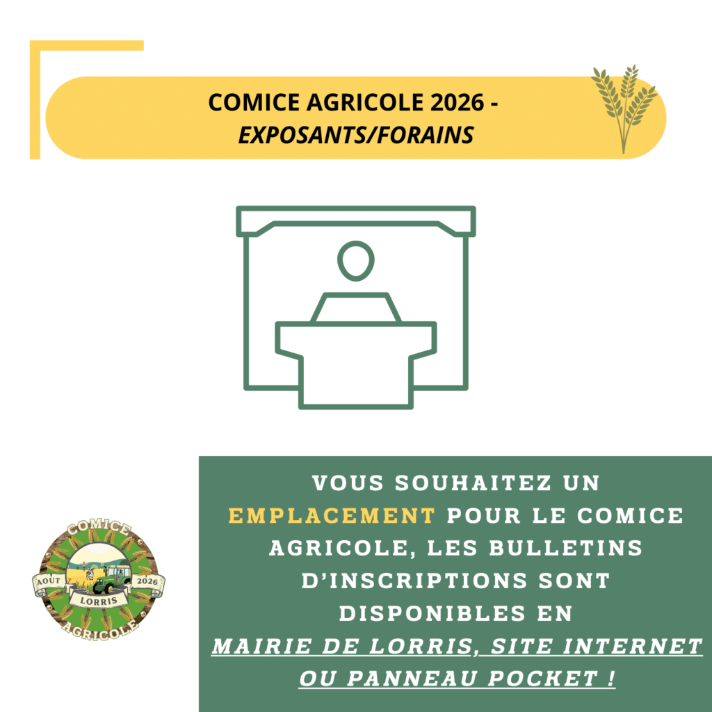 OUVERTURE DES INSCRIPTIONS EMPLACEMENTS EXPOSANTS ! Les préparatifs sont lancés pour le Comice Agricole 2026, qui se tiendra le week-end du 29-30 août 2026,...
