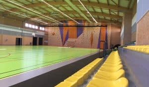 - Un pôle multisports composé d’un plateau d’évolution de 44 x 24 m optimal pour l’entraînement comme pour les compétitions. Au sein de la salle multisports, il y a un mur d’escalade.